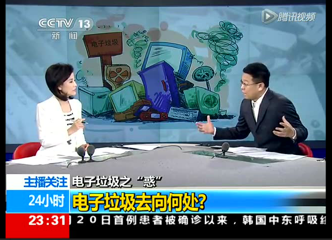 2015年6月21日,中央電視臺(tái)新聞?lì)l道播出“電子垃圾去向何處”的采訪報(bào)道,就電子垃圾的現(xiàn)狀危害及正確的處理方式,華新環(huán)??偨?jīng)理王建明及子公司香蕉皮副總經(jīng)理肖賢飛等,接受了采訪。
